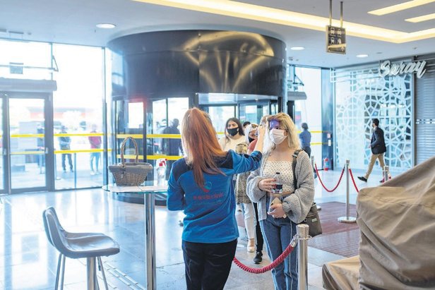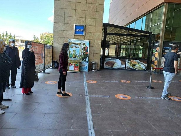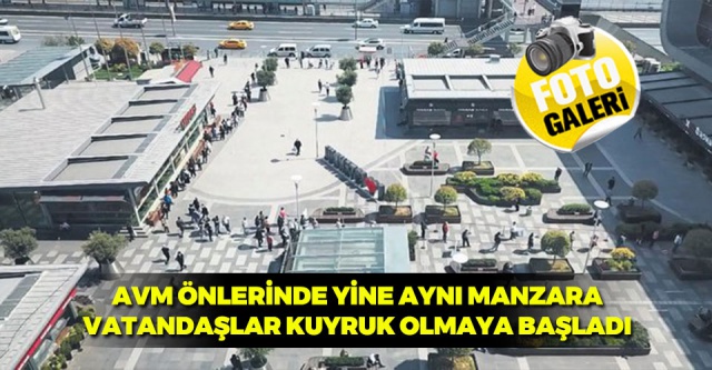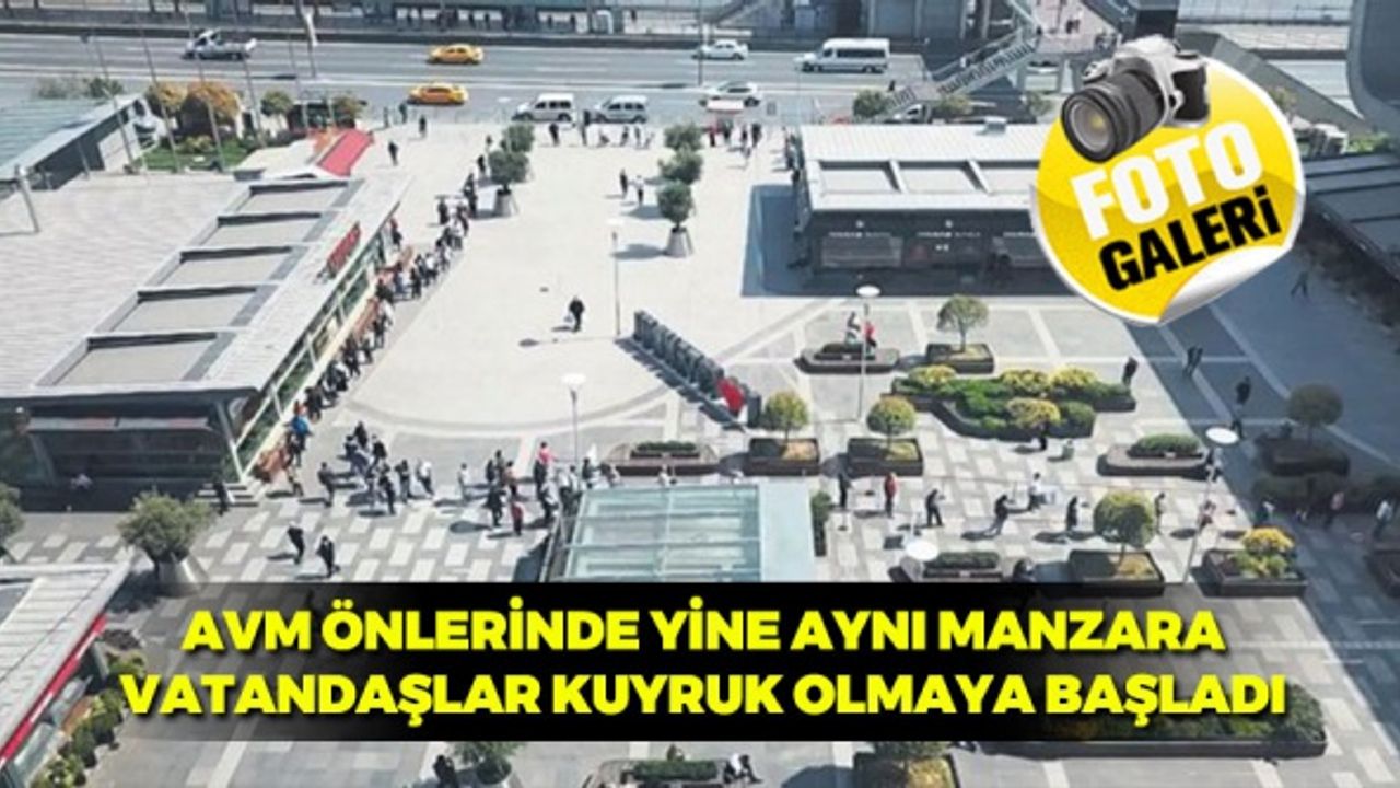 Alışveriş merkezine alışveriş yapmak için gelen vatandaşlar, AVM girişinde metrelerce kuyruk oluşturdu.