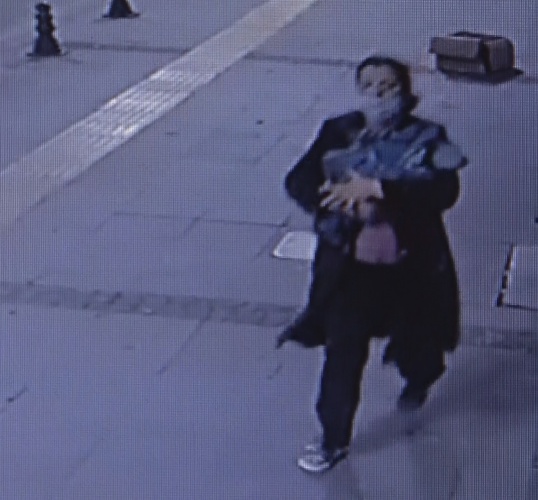 Kadının bebeğiyle apartmandan ayrıldığı ve elinde battaniyeyle döndüğü anlarsa çevrede bulunan bir iş yerinin güvenlik kamerasına yansıdı.