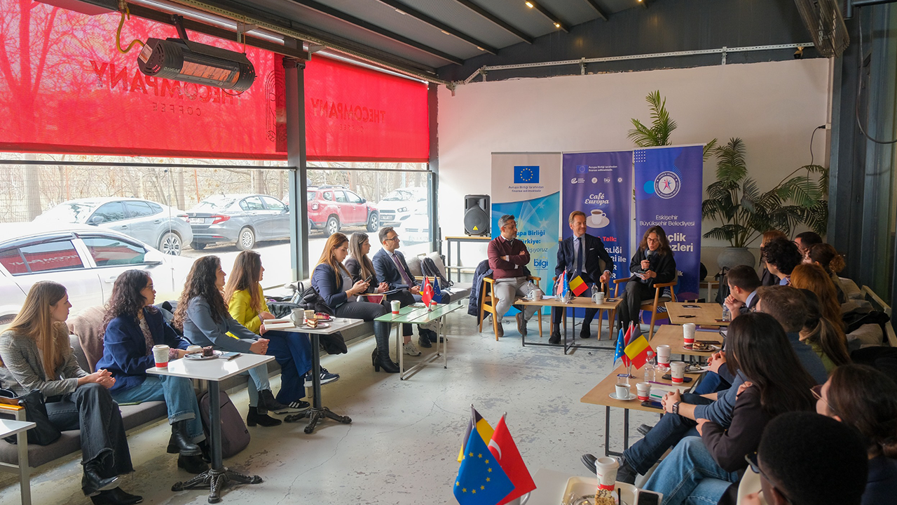 Eskişehir Büyükşehir Belediyesi Gençlik Merkezi ile Eskişehir Ticaret Odası bünyesindeki Eskişehir AB Bilgi Merkezi iş birliğinde düzenlenen Café Europa - Coffee & Talk buluşmalarının ilki gençlerin yoğun ilgisiyle gerçekleştirildi.