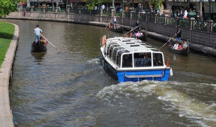 Bayram için Eskişehir’e gelen vatandaşlar Porsuk Çayı’nda düzenlenen gondol seferlerinde yoğunluk oluşturdu.
