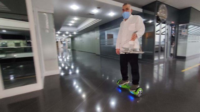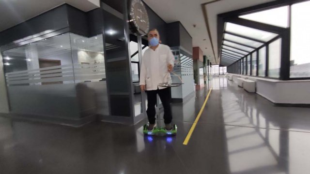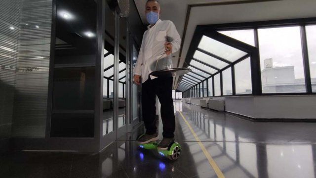 İlk kez elektrikli kaykayla çay servis edildiğine ilk kez şahit olanlar ise büyük şaşkınlık yaşıyor.