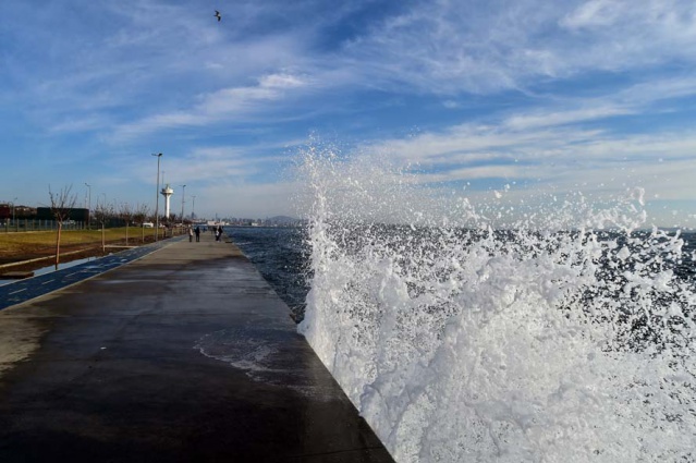 Sabah saatlerinde İstanbul’da kuvvetli lodos etkisini gösterdi. Sarayburnu Sahili'nde oluşan dalgalar yer yer şiddetini arttırarak 5 metre yüksekliğe kadar ulaştı.