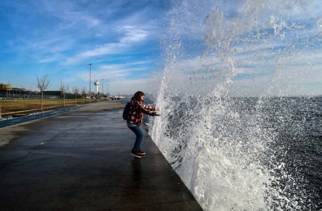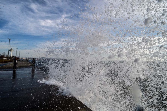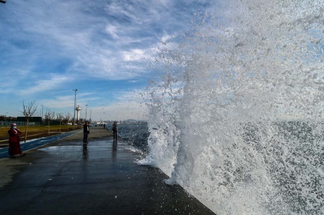 Havanın güneşli olmasını fırsat bilen vatandaşlar ise dalgalara aldırış etmeden sahilde fotoğraf çektirdi.
