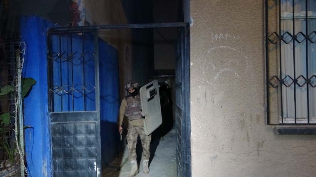 Özel harekat polislerinin de destek verdiği operasyonda, belirlenen şüpheliler gözaltına alındı.