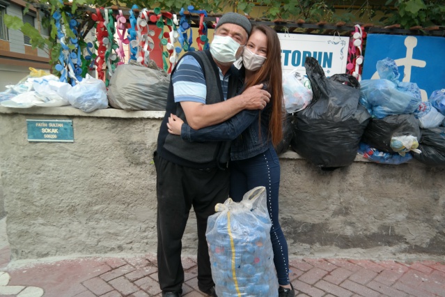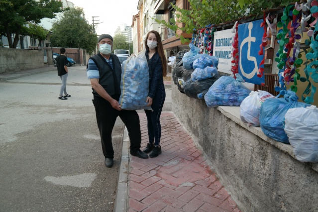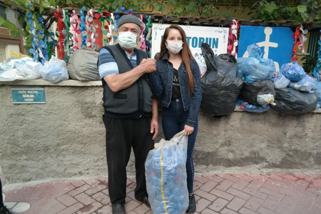 Eskişehir’de 13 yıldır torunu Melike Sarıtaş ile ihtiyaç sahibi engelli vatandaşlara tekerlekli sandalye alabilmek için mavi kapak toplayan 73 yaşındaki Halit Aydoğan, geçtiğimiz gün de yıllardır yaptığı gibi bir tanıdığından gelen ve içerisinde binlerce mavi kapak olan torbaları evinin önüne indirdi.