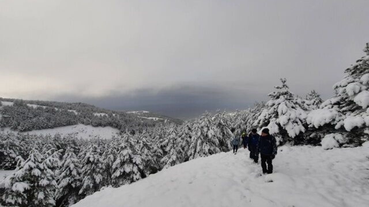 Eskişehir Doğa Aktiviteleri Grubu, kar yağışının hâkim olduğu hafta sonu tatilini doğa yürüyüşü yaparak değerlendirdi.