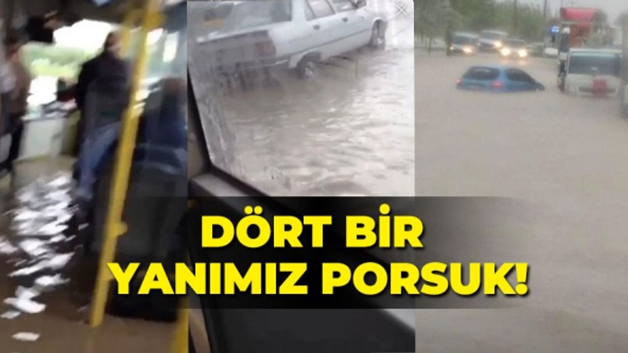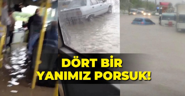 Otobüsler de sular altında kaldı, çok sayıda araç yollarda mahsur kaldı.