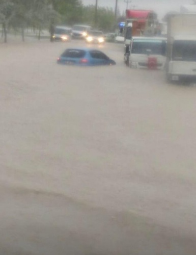 Toptancılar Sitesi, Hal Önü, Teksan ve çevresinde bulunan çok sayıda iş yerine su basarken, yollar sel suları sebebiyle adeta göle döndü.