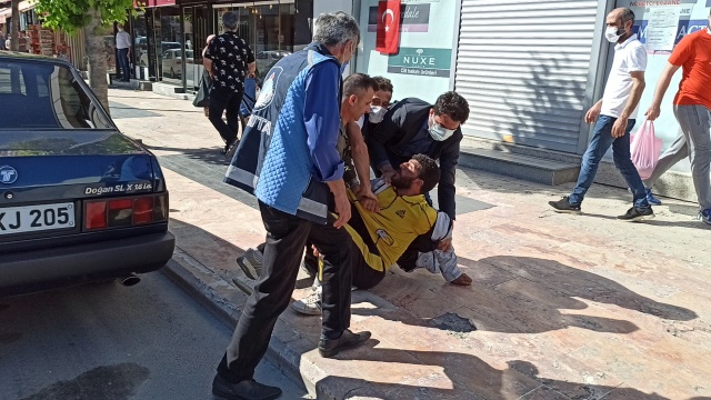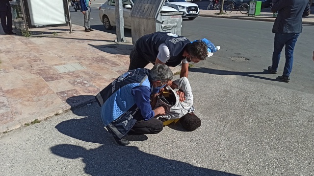 Zabıta ekiplerine zor anlar yaşatan şahıs yere yatırılarak kontrol altına alınabildi.