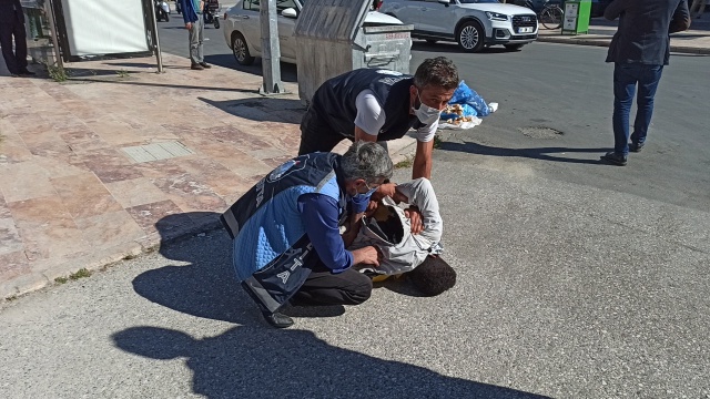 Çöpten topladığı yiyecekleri yiyen ve bu şekilde insanlardan para toplayan şahsı gören vatandaşların haber vermesi üzerine olay yerine Düzce Belediyesi Zabıta Müdürlüğü ekipleri geldi.