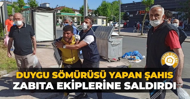 Müdahale etmeye çalışan zabıta ekiplerine şahıs direndi.