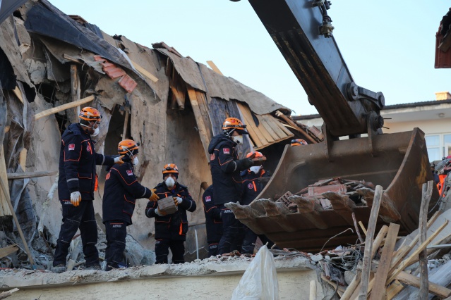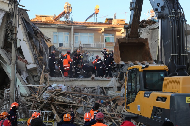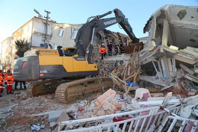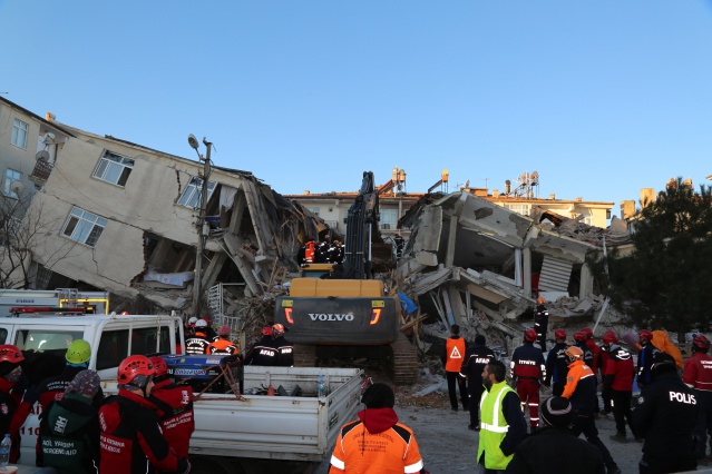Elazığ’da 16 kişinin hayatını kayıp ettiği 782 kişinin yaralandığı 6.8 büyüklüğündeki depremde gün ağarınca depremin bilançosu da ortaya çıktı. Sürsürü Mahallesi Halaylı Sokak No:9 bulunan 28 daireli 4 katlı bina da geceden beri çalışmalar devam ediyor.
