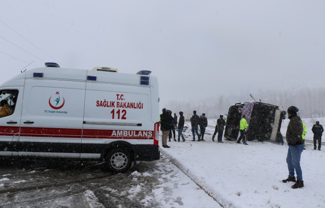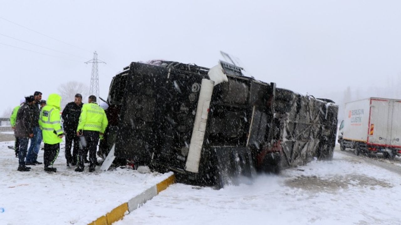 Alınan bilgiye göre, Bodrum’dan yola çıkan ve Ağrı'nın Patnos ilçesine giden Naim Aşan idaresindeki 34 EZ 6599 plakalı yolcu otobüsü, kar yağışı nedeniyle buzlanan yolda kontrolden çıkıp yan yattı.