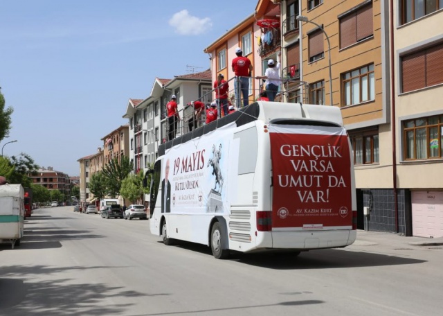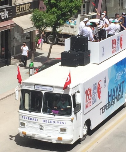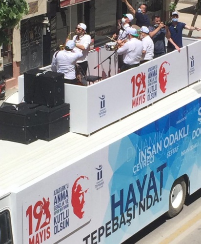 Tepebaşı Belediyesi'nin 19 Mayıs otobüsünde bandonun çaldığı marşlar beğeni topladı.