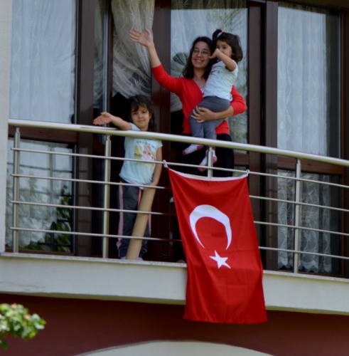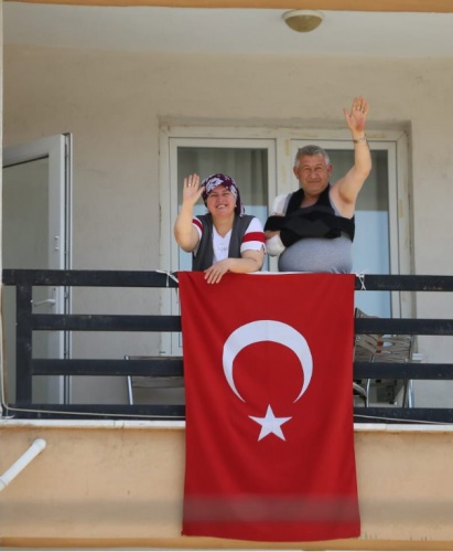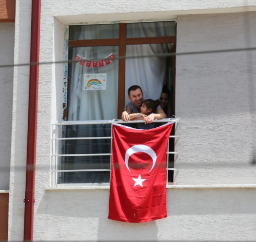 19 Mayıs kutlamalarında sokağa çıkma kısıtlaması nedeniyle dışarı çıkamayan vatandaşlar balkonlara döküldü.