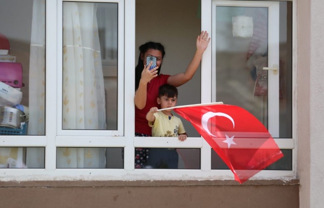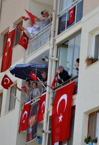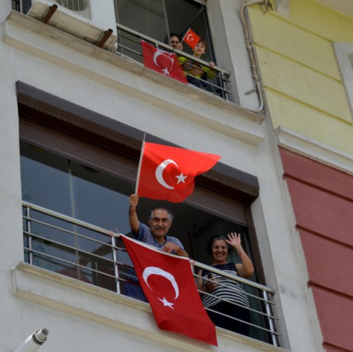 Balkonlar ve pencereler Türk bayrakları ile süslendi