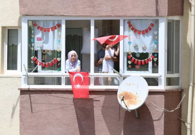 Balkonlar bayraklarla donatıldı, bayram coşkusu evlerden yaşanıyor.
