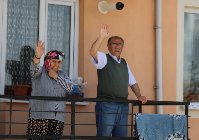 Balkonlara çıkan Eskişehirliler bayramı coşkuyla kutluyor.
