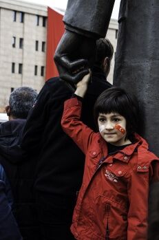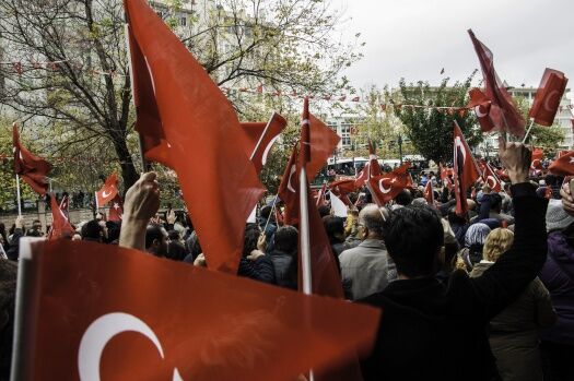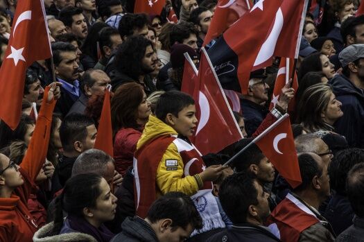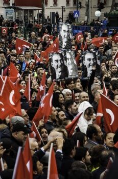 Meydanda toplanan binlerce kişi burada da ellerinde bulunan Türk bayraklarını sallayarak çalınan marşları söyledi. Daha sonra Türkiye Cumhuriyeti’nin kuruluşundan bu yana vatanı savunmak için şehit düşenler için saygı duruşu gerçekleştirip, bando EsEs eşliğinde İstiklal Marşı okundu.