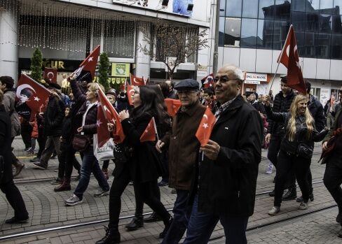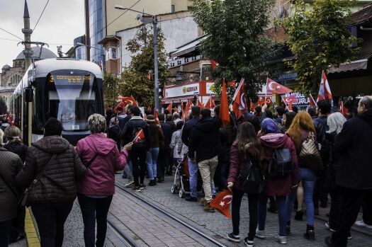 Eskişehir’de ise, 10 bin kişinin katılımıyla Cumhuriyet’in yıldönümünü kutlamak için bir yürüyüş düzenlendi.