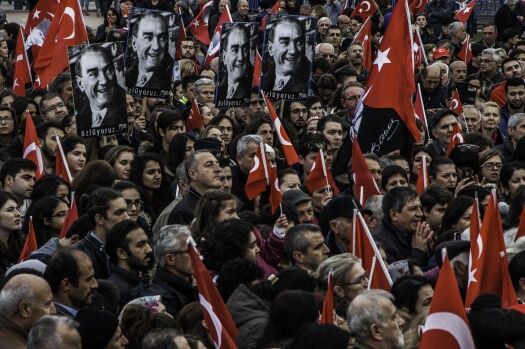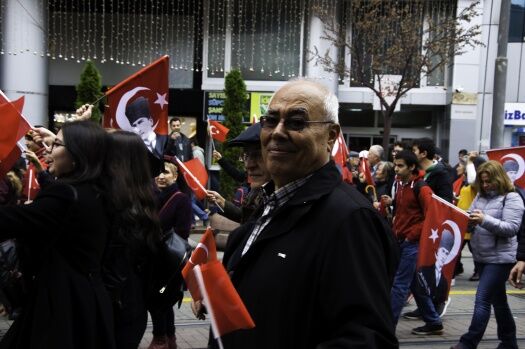 Topluluk, ‘Mustafa Kemal’in askerleriyiz ve Ne mutlu Türk’üm diyene’ sloganları ve çalınan marşlarla yürüyerek, Cumhuriyet aşklarını adeta dile getirdi.