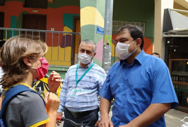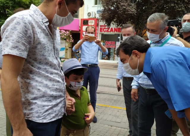 Maskesi olmayan vatandaşlara maske dağıtımı yapılırken maskesiz bir şekilde bisiklet süren bir çocukla ekiplerin diyaloğu ise güldürdü. Vali Yardımcısı Alper Balcı’nın ‘Neden maske takmıyorsun?’ sorusuna ‘Bisiklet sürenlere zorunlu değil diyorlar” yanıtını veren minik Efe, maskesini taktıktan sonra yoluna devam etti.