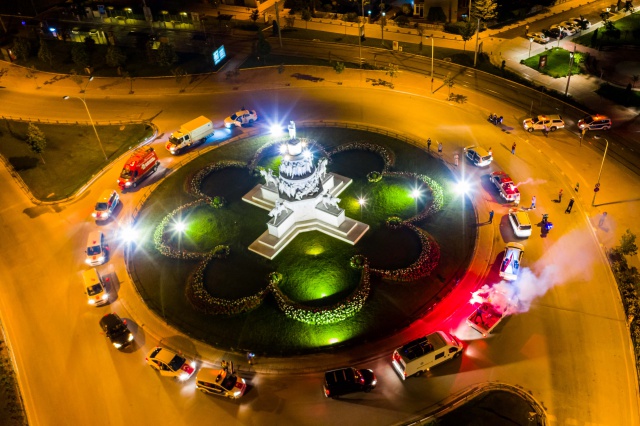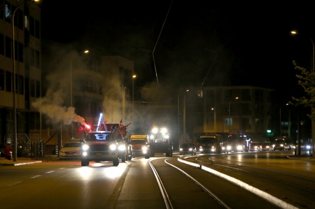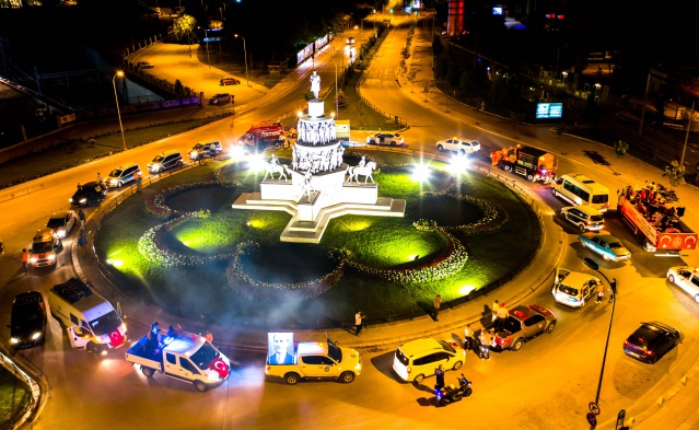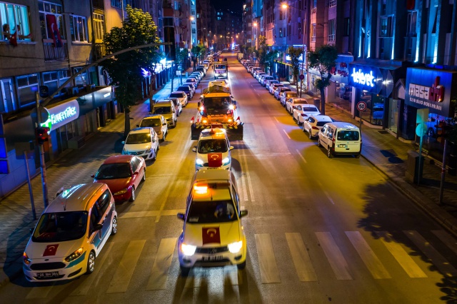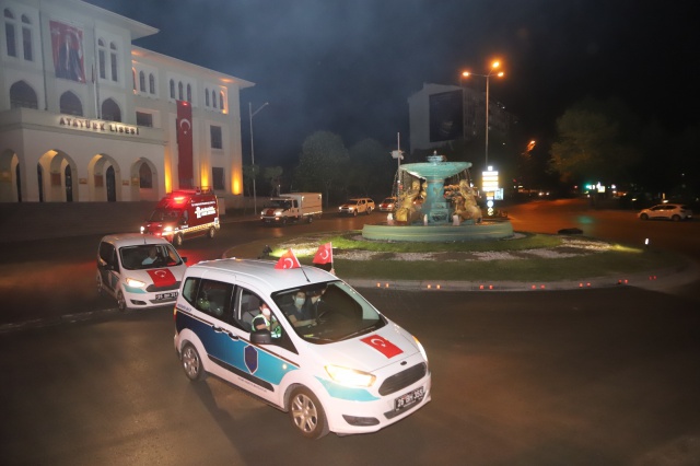 Gece saatlerinde 3 farklı noktadan başlayan fener alayında onlarca hizmet aracı marşlar ve türküler ile dolaştı.
