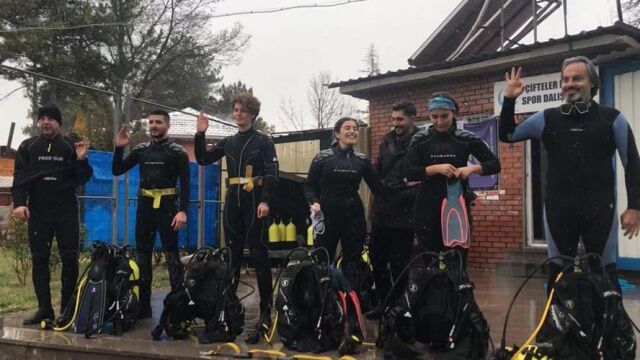 Eskişehir’in Çifteler ilçesinde yaz kış su sıcaklığı değişmediği Sakarıbaşı, dalış tutkunlarının gözdesi olmaya devam ediyor. Kışın suya girenler ısınırken, su dışında bulunanlar ise üşüyor.