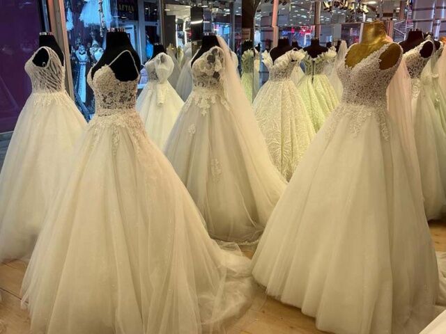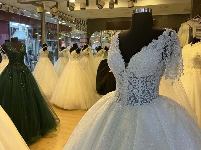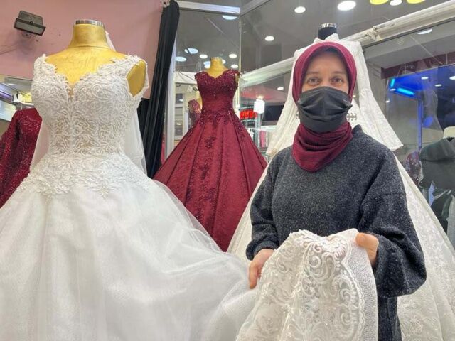 Dolar yükselince bizim maliyetlerimiz de artıyor. Yeni bir gelinlik diktirilmek istenirse o günün fiyatı neyse ona göre satıyoruz. Yazın düğün sezonunda ortalama 6-7 tane gelinlik satarken kışın bu sayı yok denecek kadar düşüyor. Mesela bu ay hiç gelinlik satmadım.