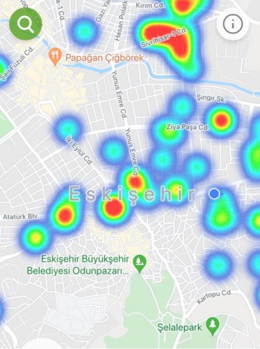 Eskişehir'de koronavirüsünde son durum... Sağlık Bakanlığı'nın Hayat Eve Sığar uygulamasındaki son görüntülere göre en riskli bölgeler... Kırmızı bölgelerin halen yoğun olması dikkat çekiyor...