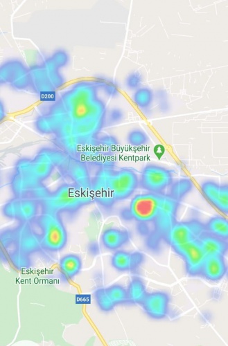 Eskişehir'in batısında Bursa Caddesi çevresinde de yoğunluk artışı olduğu görülüyor.