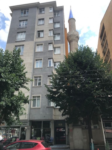 Tabakhane esnafı ve mahalleliler tarafından yaptırıldığı öğrenilen cami, 7 katlı 2 binanın ortasında kalarak neredeyse fark edilemez oldu.