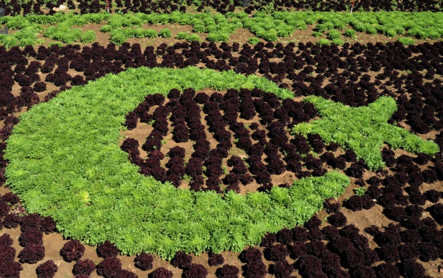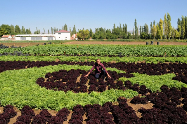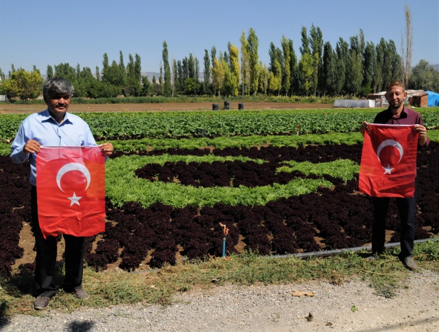 Kırmızı marullar dikim esnasındayken bayrağımızı canlandırmayı düşündük. Önce ay yıldızı çizip, üzerine yeşil marulları ektik. Daha sonra da etrafına kırmızı marulları doldurarak bayrağımızı canlandırmaya çalıştık. Hava şartları, marulların yetişirken yaşadığı böcek ve sinek gibi etkenlerden dolayı tam istediğimiz gibi kapatmadı. Yine de güzel bir şekil ortaya çıkartmaya çalıştık.