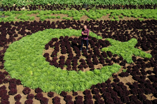 Eskişehir’de çiftçilik yaparak geçimini sağlayan Telat Tarhan isimli üretici, adeta bir tuval olarak kullandığı tarlasına marullardan Türk bayrağı çizdi.
