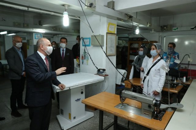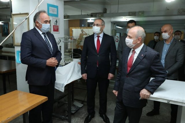 Vali Özdemir Çakacak, ilimizin maske ihtiyacını karşılamak üzere Gazi Mesleki ve Teknik Anadolu Lisesi’ndeki Cerrahi Maske Üretim Atölyesini ziyaret etti.