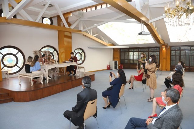 Salonlarda maske takmanın zorunlu olduğunu ve misafirler için sandalyelerin fiziksel mesafe kuralına göre ayarlandığını ifade eden yetkililer, düğünlerin başlamasıyla birlikte nikah memurlarının özel salonlarda da nikah kıymaya başlayacağının bilgisini verdiler.