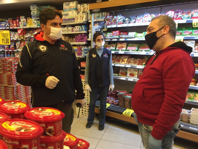 Eskişehir’de, sokağa çıkma yasağına saatler kala polis ekipleri, süper market denetimlerini iki kat arttırdı. Ekipler; hijyen, market içindeki insan sayısı, sosyal mesafe kuralı, sebze ve meyvelerin paketli halde satılması gibi birçok hususta denetim yaparak işletme sorumlularını dikkatli olmaları konusunda uyardı.