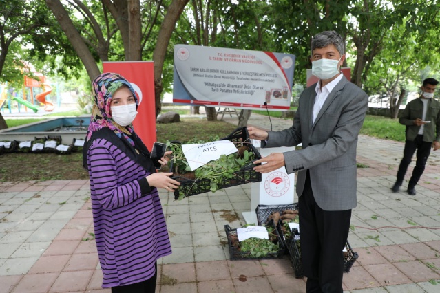 Mihalgazi İlçe Tarım ve Orman Müdürlüğünce hazırlanıp İl Tarım ve Orman Müdürlüğü koordinesinde uygulanan "Mihalgazi'de Alternatif Ürün Olarak Tatlı Patates Yetiştiriciliği" Projesi tanıtımı düzenlenen törende tatlı patates fideleri toprakla buluştu.