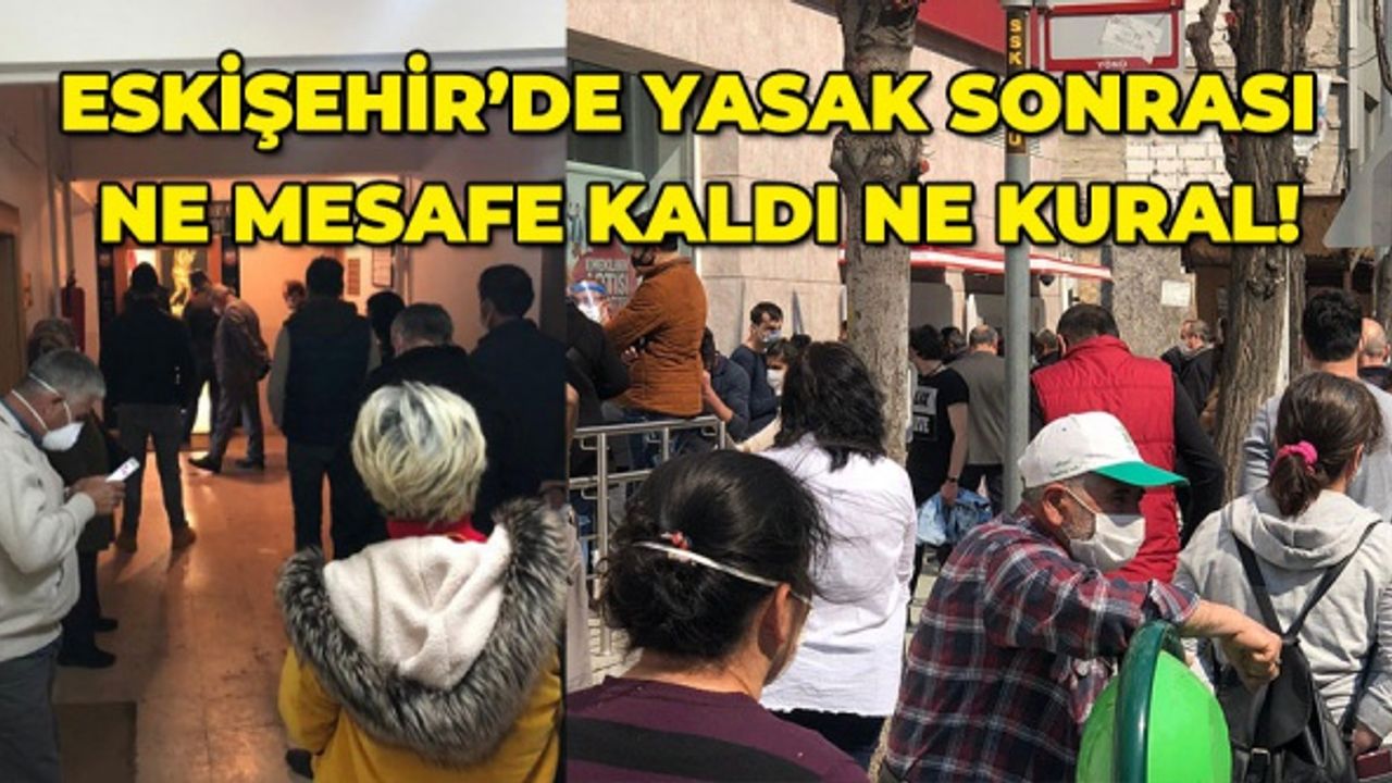 4 günlük sokağa çıkma kısıtlamasının sonrasında bugün Eskişehirliler sokağa döküldü, bankalar, marketler ve kurumlarda oluşan kuyruklarda sosyal mesafe ve kurallara ise hiç dikkat ediliyor...