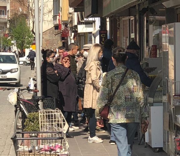 Oluşan uzun kuyruklarda sosyal mesafelerin bırakılmamış olması dikkat çekti.