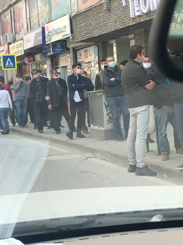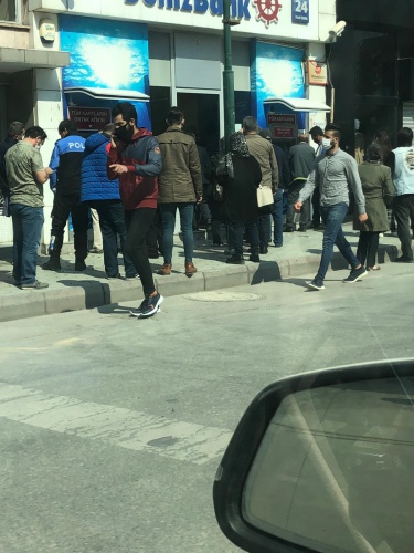 Bankalar önünde de uzun kuyruklar oluştu. Vatandaşlar iç içe sırada beklediler, bazı vatandaşların maske takmadıkları görüldü.