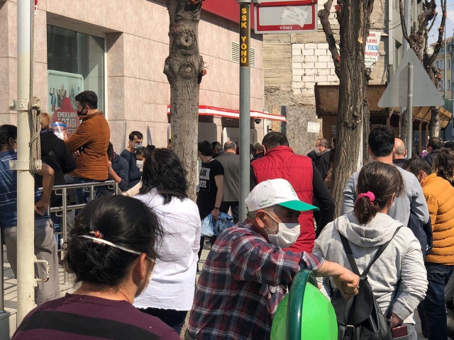 Çeşitli kurumlarda oluşan kuyruklarda vatandaşlar dar alanlarda kuyruk oldu, sosyal mesafe ortadan kalktı...