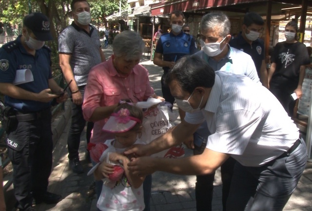 Denetim sırasında Vali Yardımcısı Alper Balcı'nın maske takmak istediği minik Elif arkasını dönerek maskeyi kendisi takmak isteyince gülümseten anlar yaşandı.
