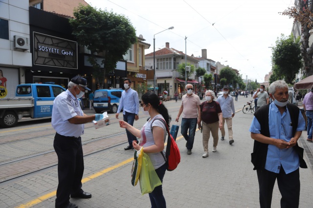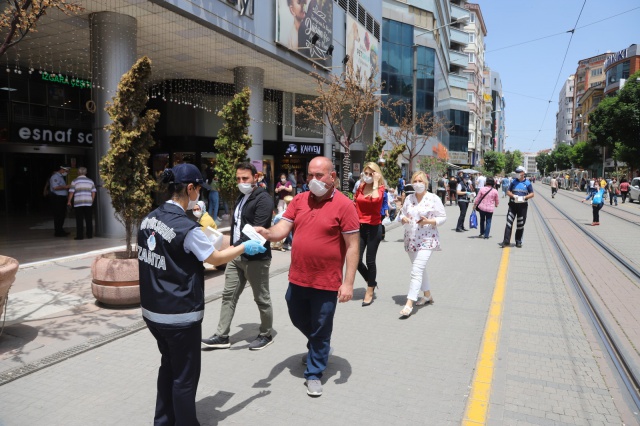 İki Eylül Caddesi ve İsmet İnönü Caddesi başta olmak üzere birçok noktada vatandaşları bilinçlendirmeye yönelik çalışmalar gerçekleştirdiklerini ifade eden Zabıta Dairesi Başkanlığı yetkilileri “Şehrimizde 15 Mayıs’ta Eskişehir Valiliği’nce alınmış karar gereği maske takmak zorunlu hale gelmiştir. Salgın döneminin başında vatandaşlarımız bu karara uyarken, normalleşme süreci ile birlikte maskelerin çenede, elde, çantada bulundurulduğunu gözlemliyoruz.