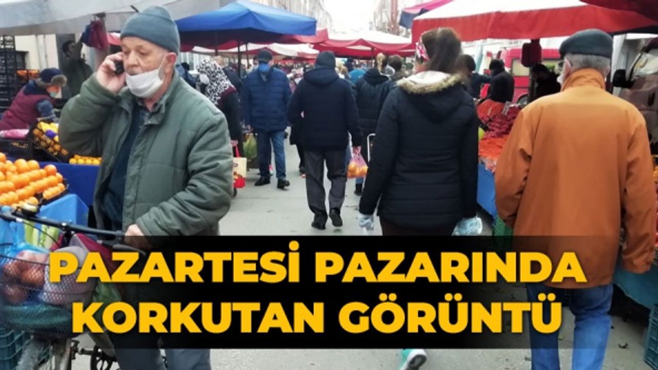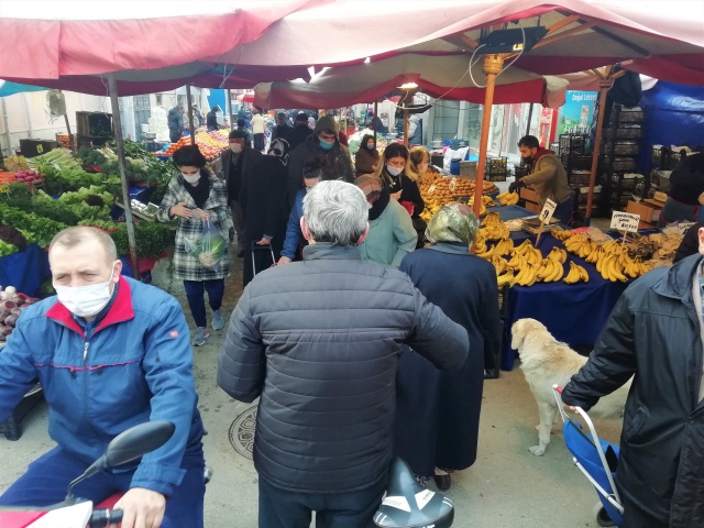 Pazar yerinde sosyal mesafe ve maske kuralları ihlal ediliyor