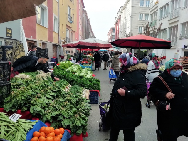 Her pazartesi günü Balkan Caddesi’nde kurulan ve halkın büyük ilgi gösterdiği semt pazarının bugün de kalabalık olduğu gözlemlendi. Perşembe günü saat 21.00’de başlayan ve pazartesi saat 05.00’te sona eren sokağa çıkma kısıtlamasının ardından özellikle sebze ve meyvelere olan ilgi büyüktü.