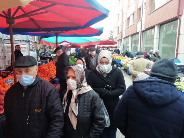 Eskişehir’de 80 saatlik sokağa çıkma yasağının ardından vatandaşlar alışveriş yapmak için kurulan semt pazarına akın ederken sosyal mesafe ve maske kurallarının ihlal edildiği anlar fotoğraf karelerine yansıdı.