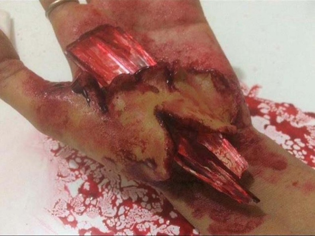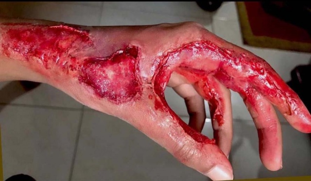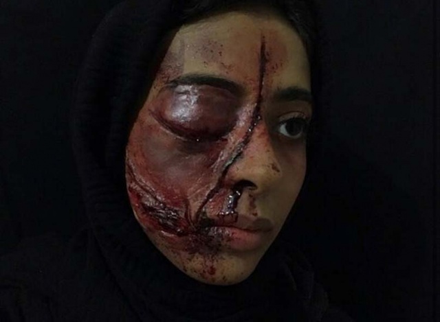 “Çalışmalarımda, scar dolgu (yara materyalleri), derma wax balmumu, sıvı lateks, sulu boyalar ve farklı sahte kan makyaj malzemeleri kullanıyorum. Mısır’da bu malzemelere ulaşmam kolay olmadı ve ben de internetten öğrendiğim alternatif yöntemler sayesinde daha da profesyonelleştim. Bu alanda yapılanları ve bu işle uğraşan sanatçıları takip ettikçe daha çok bilgiye eriştim.”
