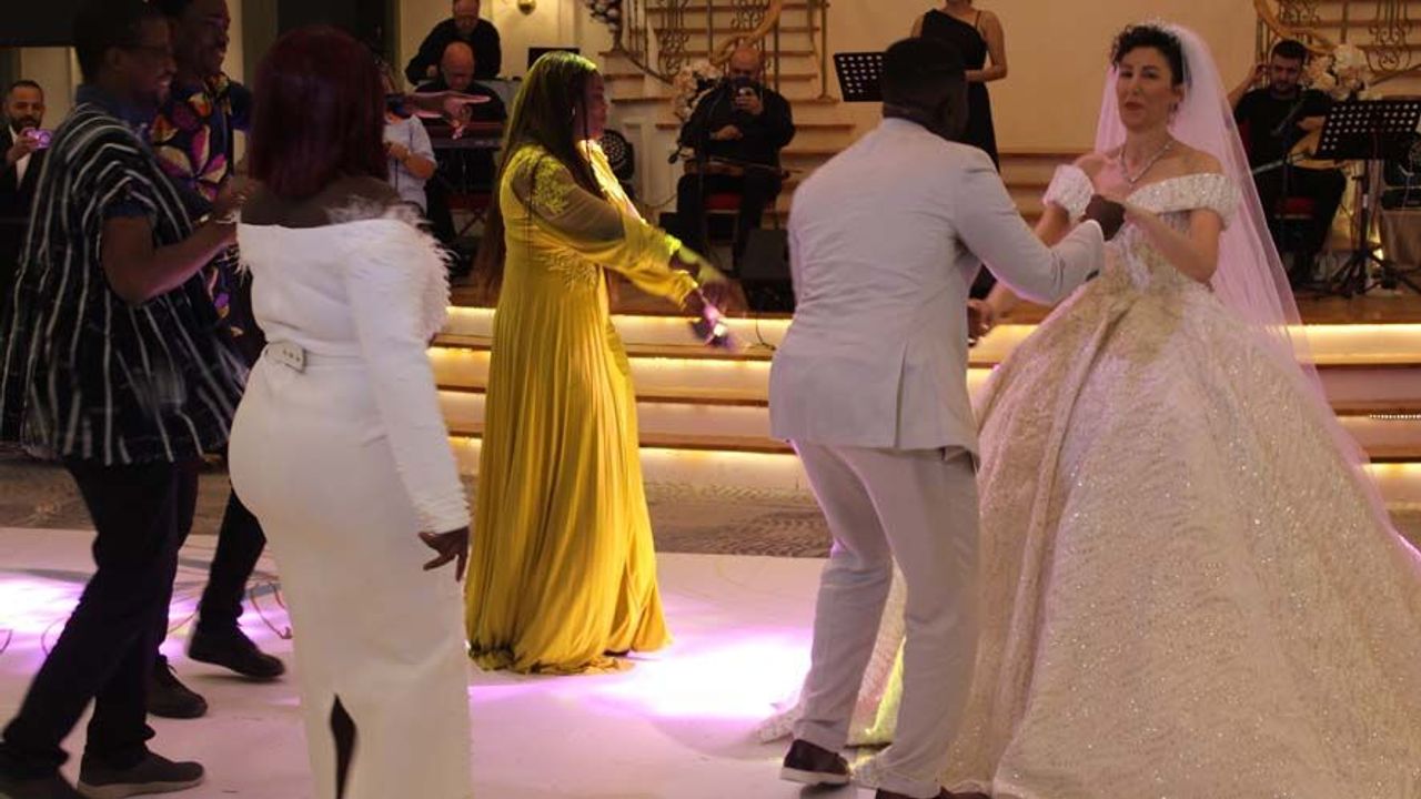 Yabancı damat Mcbee’nin oyun havalarına alışık görüntüsü eğlenceli anlara sahne olurken salondaki davetlilerden de büyük beğeni ve alkış aldı. Türkiye’ye özgü şarkıların ardından Esra ve Mcbee çifti, Ganalı vatandaşlarla birlikte Afrika’ya ait bestelere ayak uydurarak düğün eğlencesine devam etti.