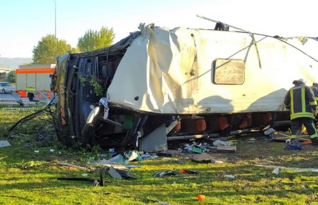 Eskişehir güne dehşet bir kaza ile uyandı... Bir işçi servisi devrildi... Çok sayıda ölü ve yaralı var... Kazanın ilk anlarına dair görüntüler dehşetin boyutunu gözler önüne serdi...